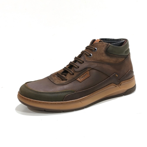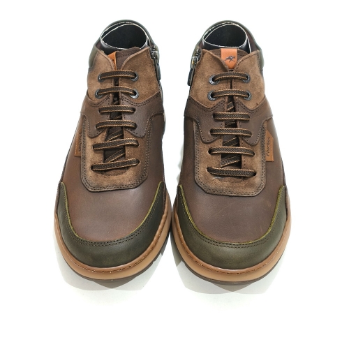 Botín de cordoneras con cremallera lateral, fabricado en piel, con plantillas extraíbles y suela de goma
