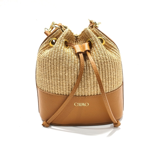 Bolso bombonera con correa para bandolera, fabricado en piel y rafia, de medidas aproximadas de 23 cm x 13 cm