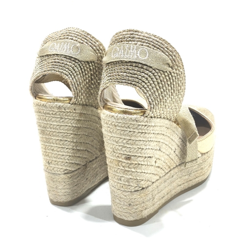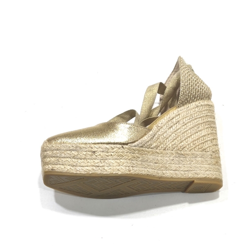 Alpargata atada el tobillo, fabricada en piel, con cuña de 9 cm  y plataforma de 3 cm de yute natural