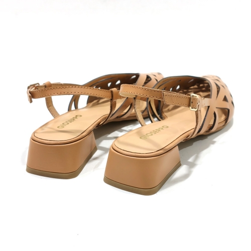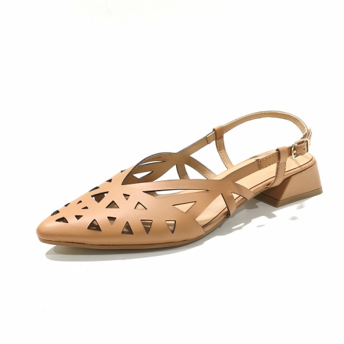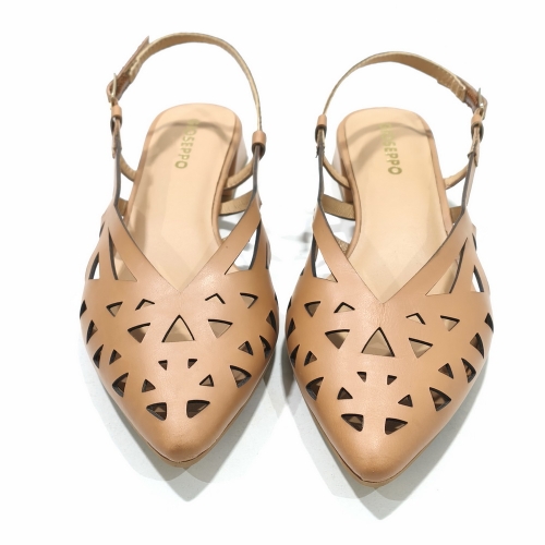 Zapato descubierto de talón, fabricado en piel troquelada, con suela de goma