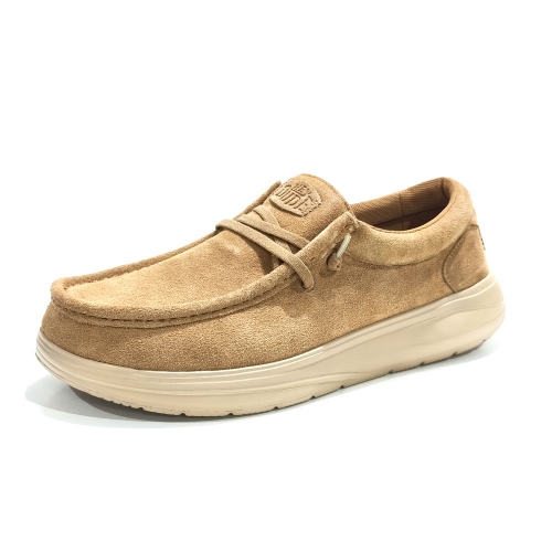Zapato de cordoneras elásticas, fabricado en ante, con plantillas extraíbles y suela de goma