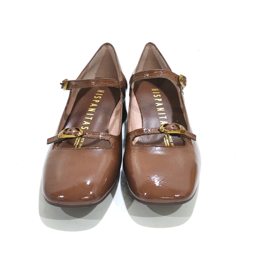Zapato corte salón con dos tiras con hebillas, fabricado en charol, con tacón de 3 cm y suela de goma