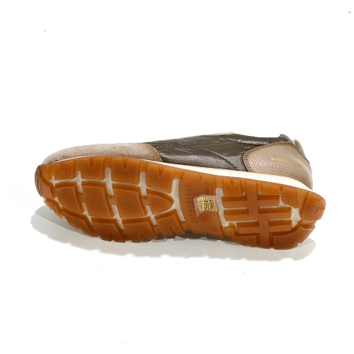 Zapato abotinado con elástico en el empeine, fabricado en serraje y tela, con plantillas extraíbles y suela de goma