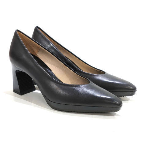 Zapato corte salón, fabricado en piel, con tacón de 6 cm y suela de goma