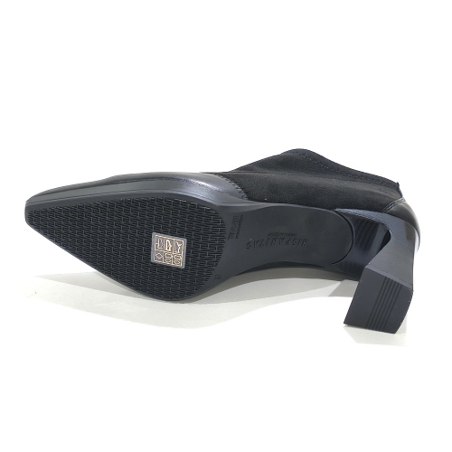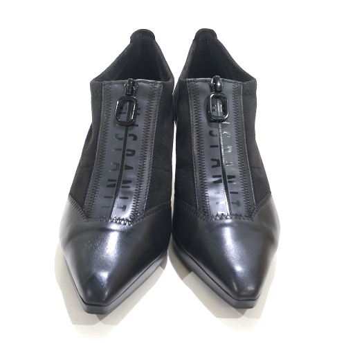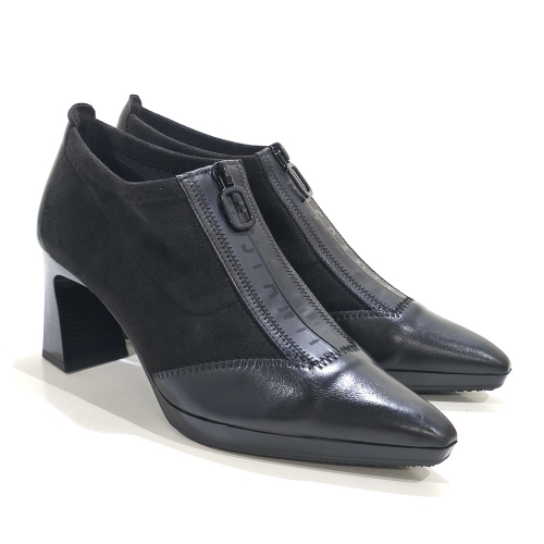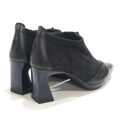 Zapato con cremallera en el empeine, fabricado en licra elástica y piel, con tacón de 6 cm y plataforma de 1 cm