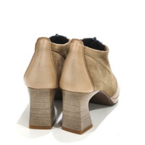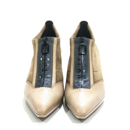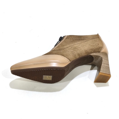 Zapato con cremallera en el empeine, fabricado en licra elástica y piel, con tacón de 6 cm y plataforma de 1 cm