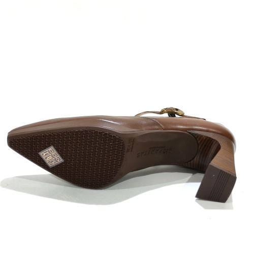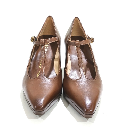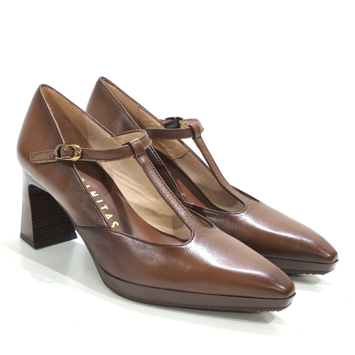 Zapato con tira en el empeine, fabricado en piel, con tacón de 6 cm y plataforma de 1 cm