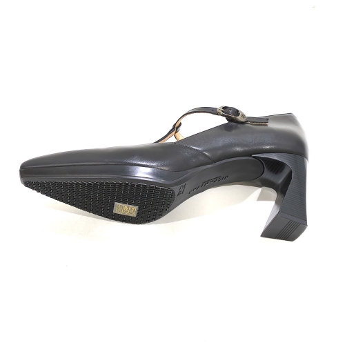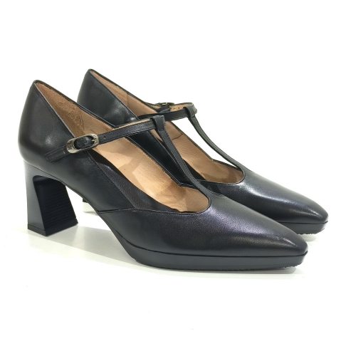 Zapato con tira en el empeine, fabricado en piel, con tacón de 6 cm y plataforma de 1 cm