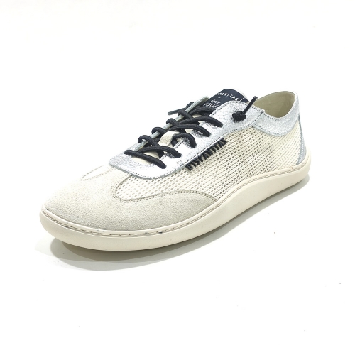 Deportivo con cordones elásticos, fabricado en maya elástica y serraje, con plantillas extraíbles y suela de goma