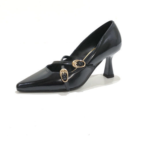 Zapato corte salón con dos tiras con hebillas, fabricado en piel, con tacón de 6 cm y suela de goma