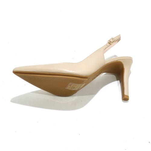 Zapato salón descubierto de talón, fabricado en piel, con tacón de 9 cm y suela de cuero