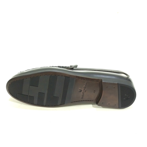 Zapato mocasín con antifaz, fabricado en piel, con suela de goma