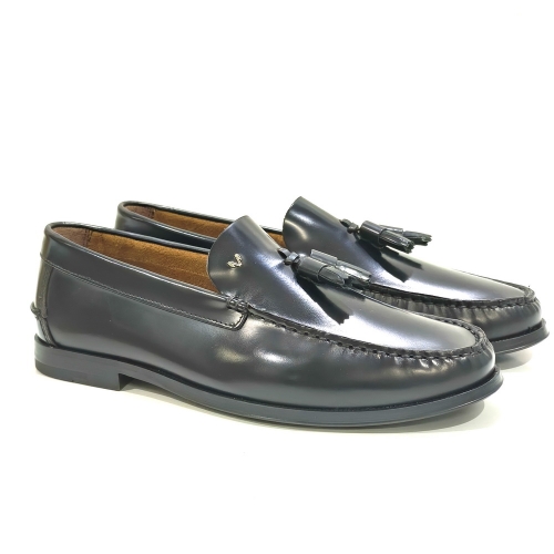 Zapato mocasín con borlas, fabricado en piel, con suela de goma