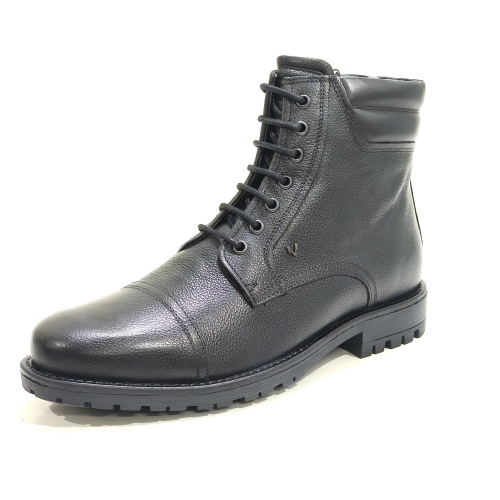 Bota de cordoneras con cremallera lateral, fabricado en piel, con suela de goma