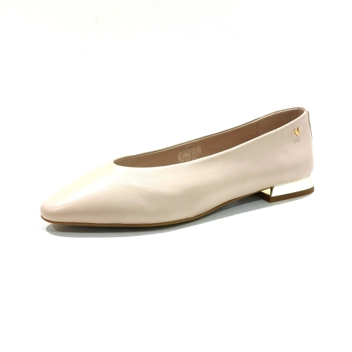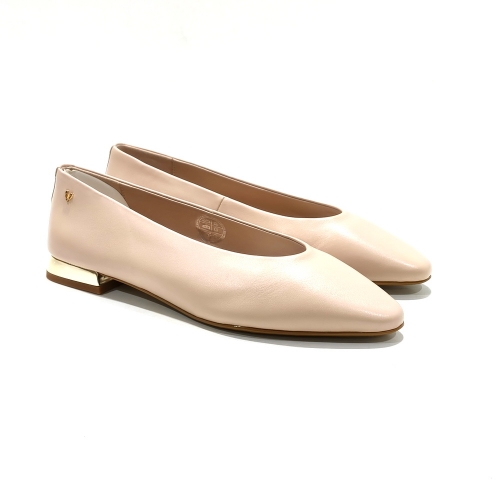Sabrina plana de piel, con suela de goma y tacón de 1 cm dorado