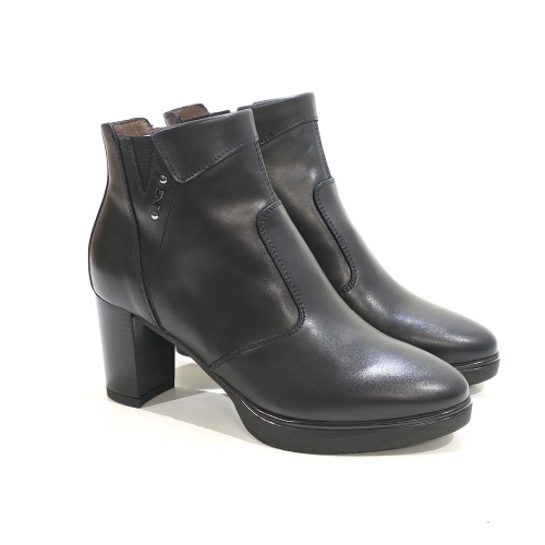 Botín con cremallera latera, fabricado en piel, con tacón de 6 cm y plataforma de 2 cm