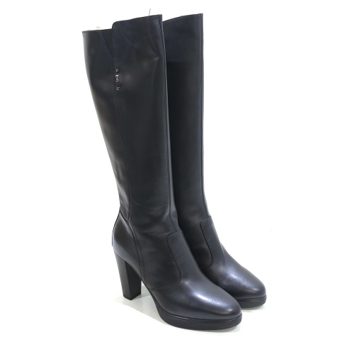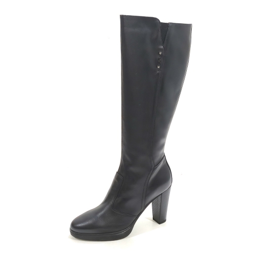 Bota de caña alta con cremallera lateral, fabricada en piel, con tacón de 7 cm