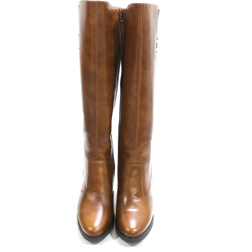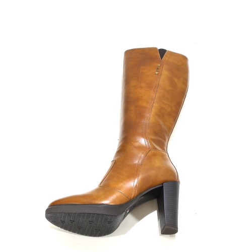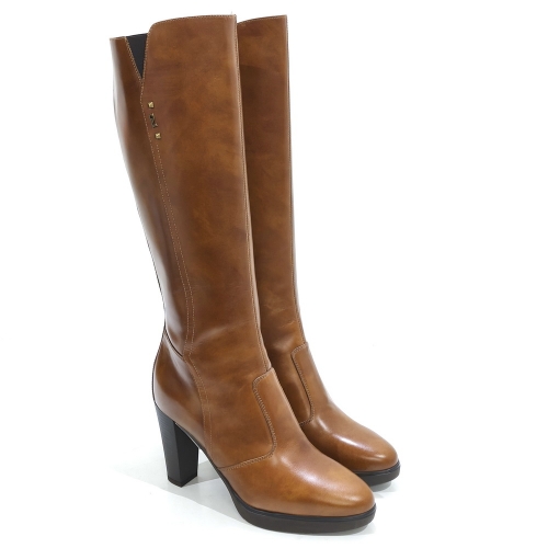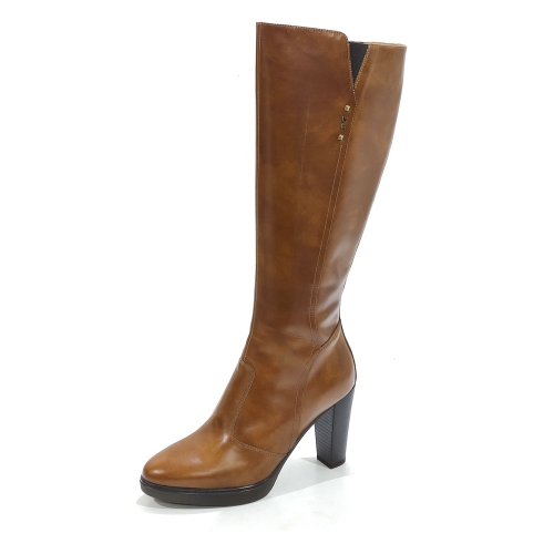 Bota de caña alta con cremallera lateral, fabricada en piel, con tacón de 7 cm
