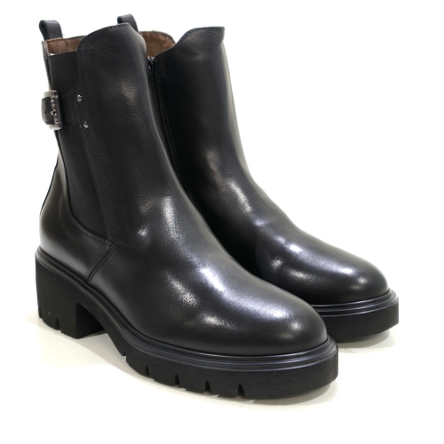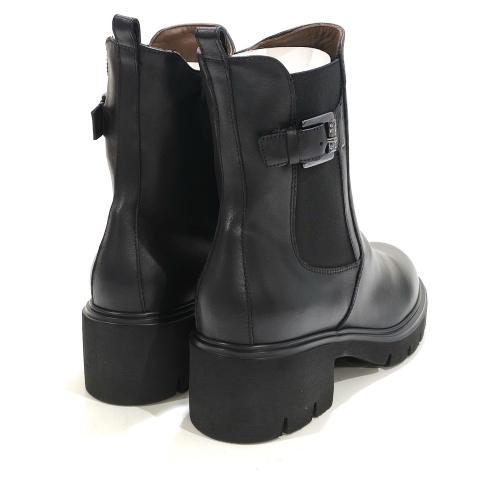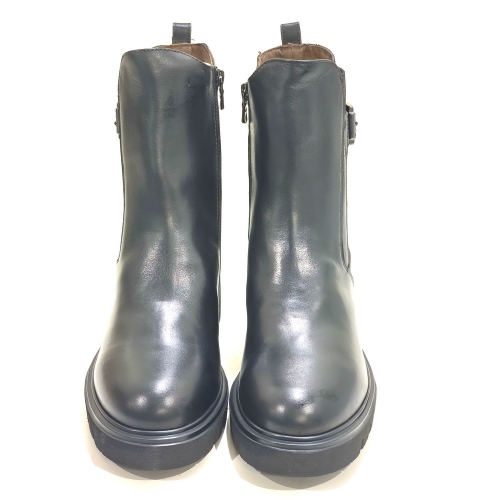 Botín con cremallera y elástico lateral, fabricado en piel, con tacón de 4 cm y plataforma de 1.5 cm de goma