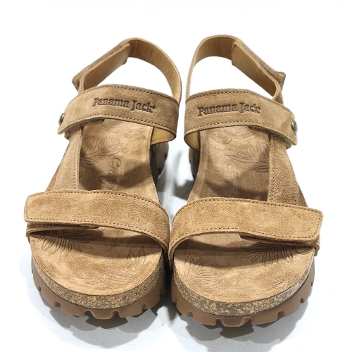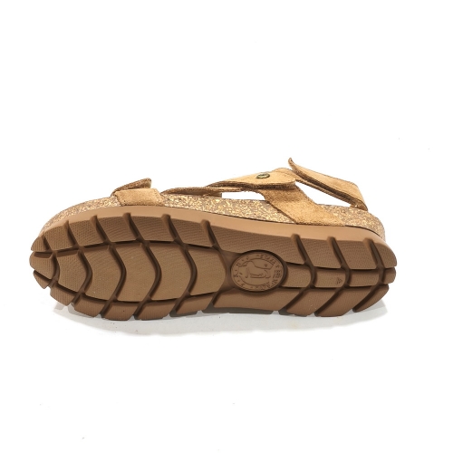 Sandalia de tiras ajustables con cinta textil adhesiva, fabricada en nobuk, con plataforma de 1 cm  de corcho