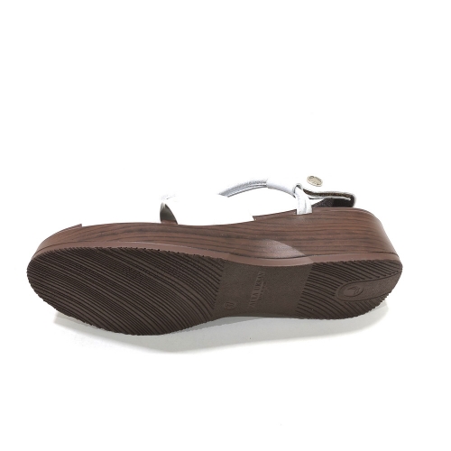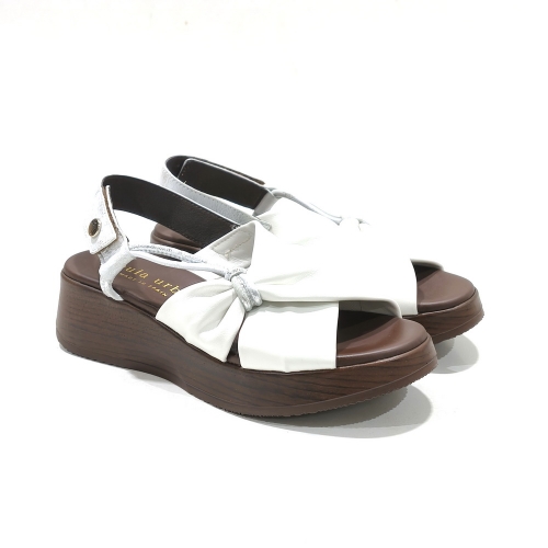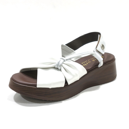 Sandalia con nudo con tira ajustables con cinta textil adhesiva, fabricada en piel, con cuña de 5 cm y plataforma e 3 cm