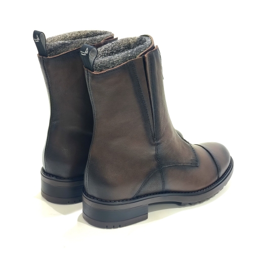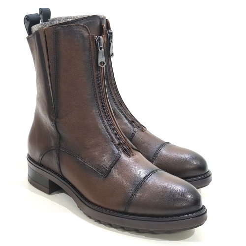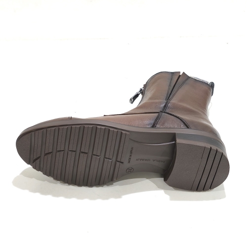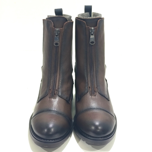 Botín con cremallera central, fabricado en piel, con tacón de 2 cm y suela de goma