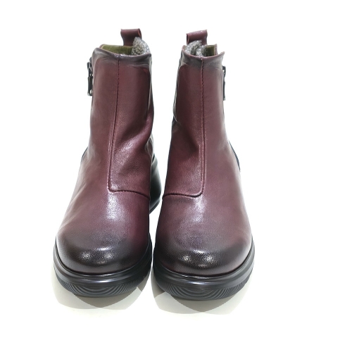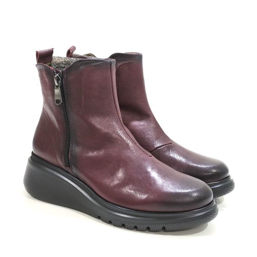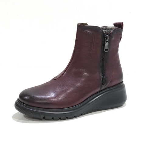 Botín con cremallera exterior, fabricado en piel, con cuña de 3 cm de goma