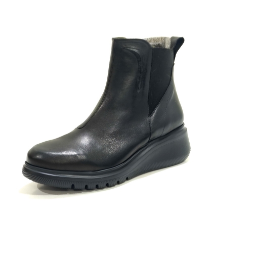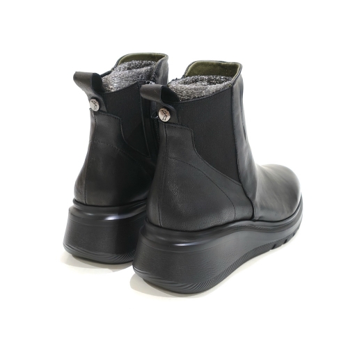 Botín con cremallera lateral y elástico, fabricado en piel, con cuña de 2 cm de goma