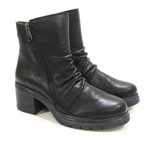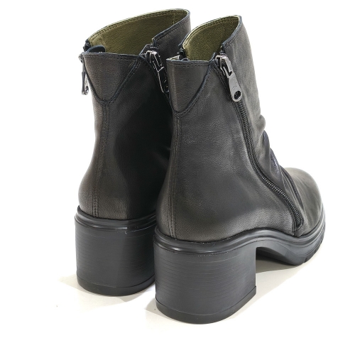 Botín con dos cremalleras laterales, fabricado en piel, con tacón de 5 cm  y suela de goma