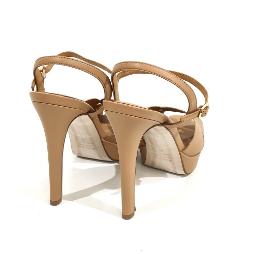 Sandalia con tira con hebilla, fabricada en piel, con tacón de 8 cm y plataforma de 3 cm