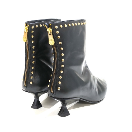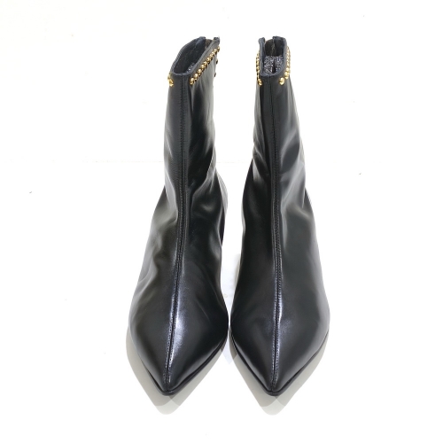 Botín con cremallera trasera y tachas metálicas, fabricado en piel, con tacón de 5 cm