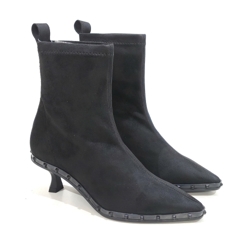 Botín con cremallera lateral, fabricado en licra elástica, con tacón de 5 cm y suela de goma