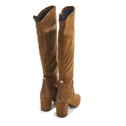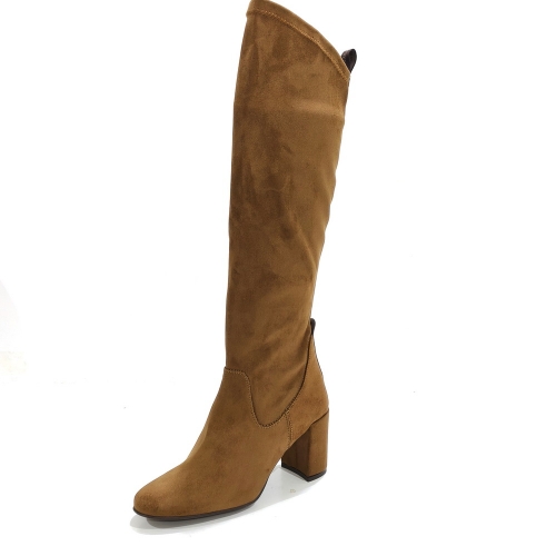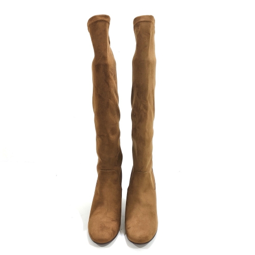 Bota de caña alta, fabricada en licra elástica, con tacón de 5 cm y suela de goma