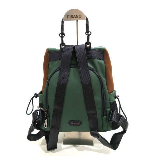 Bolso mochila multi bolsillo, fabricada en material textil, de medidas aproximadas de 33 cm x 26 cm