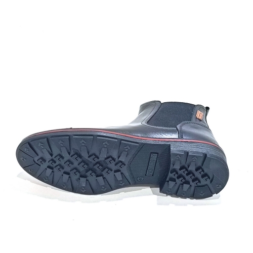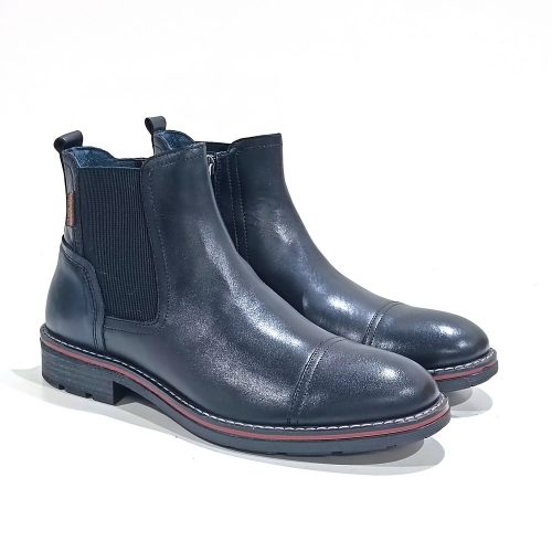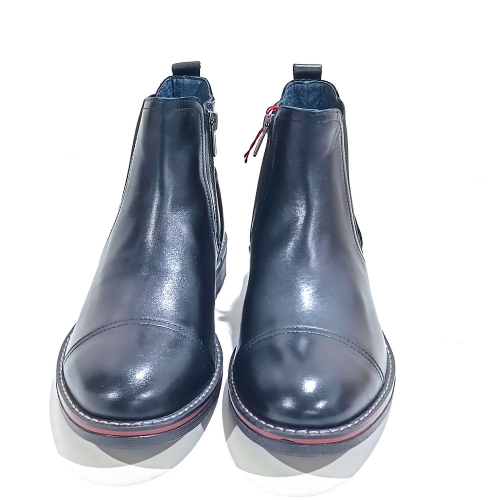 Botín con cremallera y elástico, fabricado en piel, con plantillas extraíbles y suela de goma