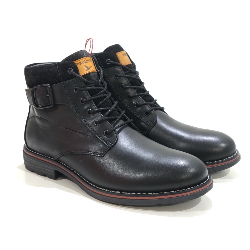 Botín de cordoneras con cremallera lateral, fabricado en piel, con plantillas extraíbles y suela de goma