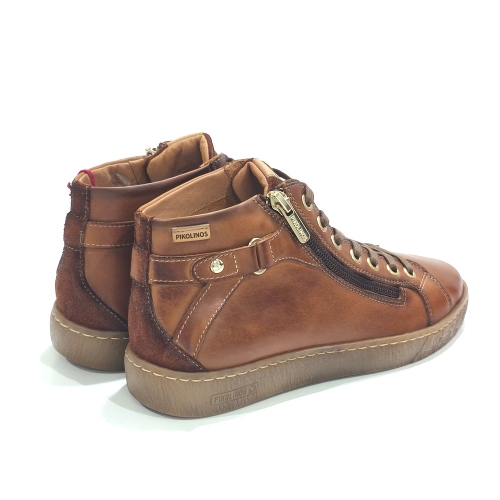 Botín de cordoneras con cremallera lateral, fabricado en piel, con plantillas extraíbles y suela de goma