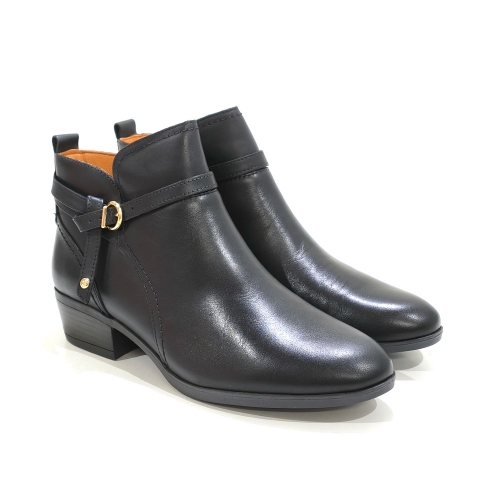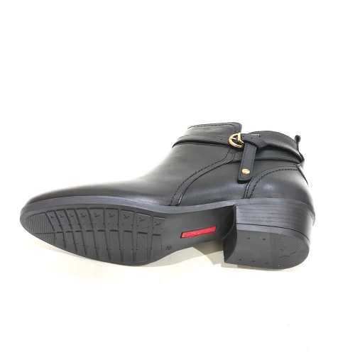 Botín con cremallera lateral y hebilla, fabricado en piel, con plantillas extraíbles y tacón de 5 cm