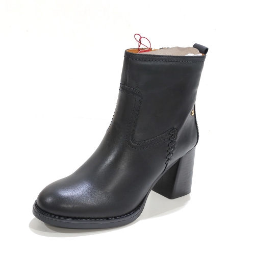 Botín con cremallera lateral, fabricado en piel, con tacón de 6 cm y suela de goma