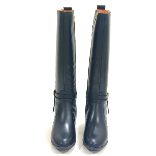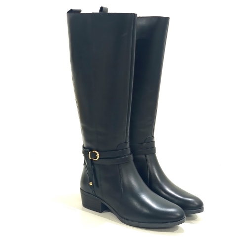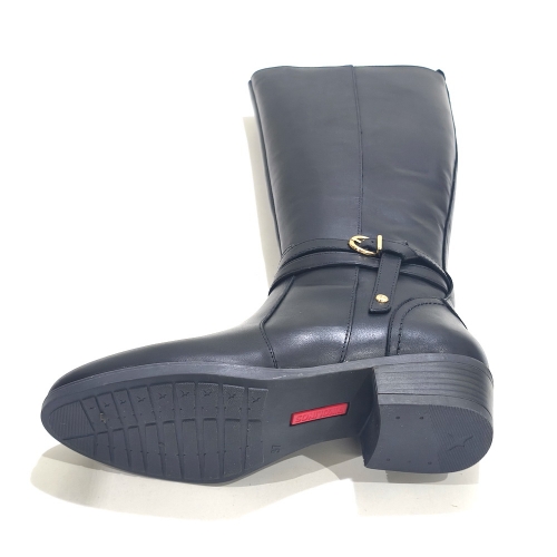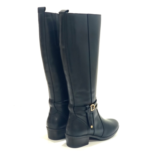 Bota con cremallera lateral y adorno metálico, fabricada en piel, con tacón de 4 cm y suela de goma