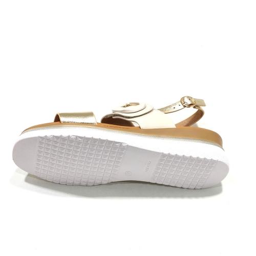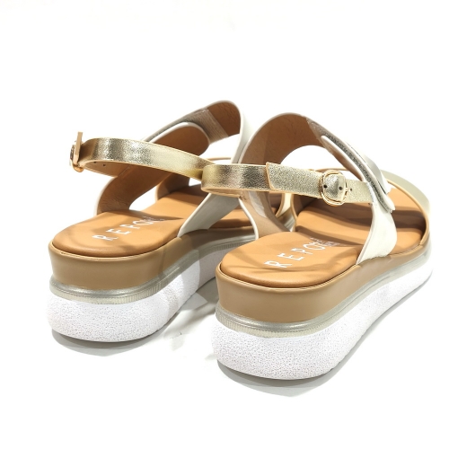 Sandalia con tiras ajustable con cinta textil adhesiva con adorno, fabricada en piel, con cuña de 3 cm y plataforma de 2 cm