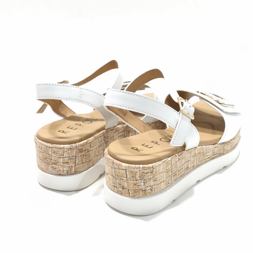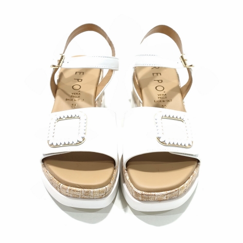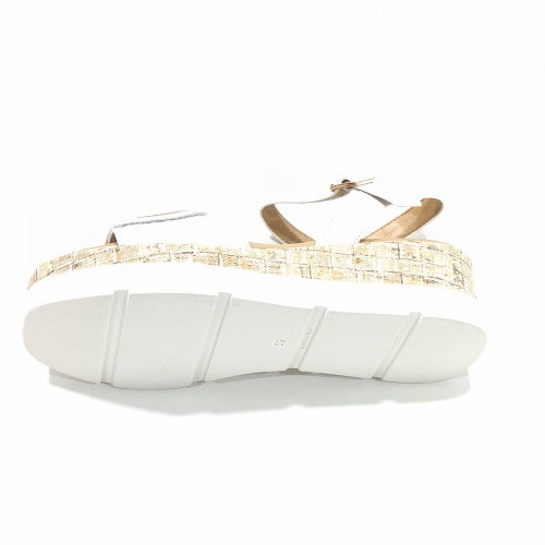 Sandalia con tira ajustable con cinta textil adhesiva, fabricada en piel con adorno en la cara, con cuña de 5 cm y plataforma de 2 cm