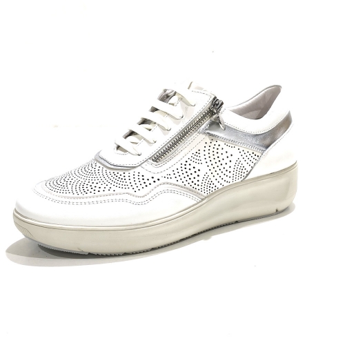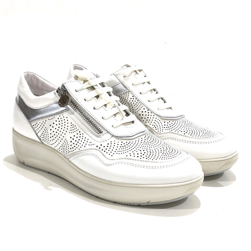 Zapato de cordoneras con cremallera lateral, fabricado en piel troquelada, con plantillas extraíbles y cuña de 2 cm de goma con sistema bluesoft