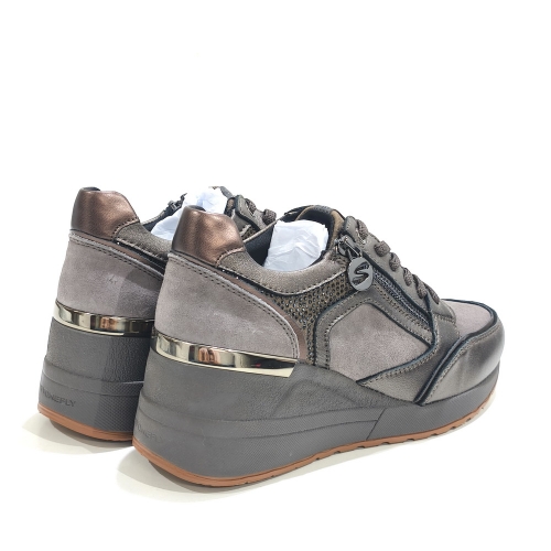 Zapato de cordoneras con cremallera lateral, fabricado en piel, con plantillas extraíbles y cuña de goma de 5 cm