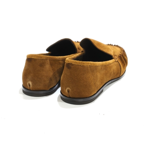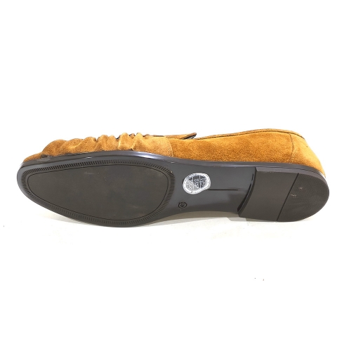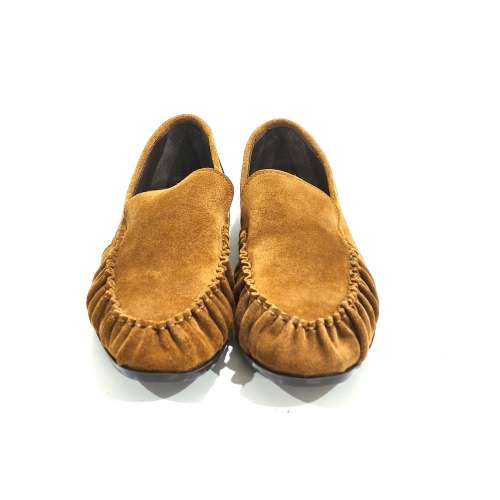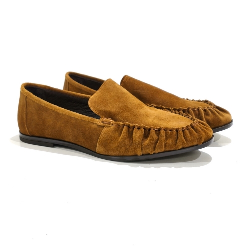 Zapato plano mocasín, fabricado en ante, con suela de goma