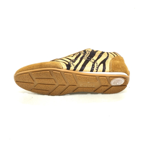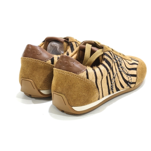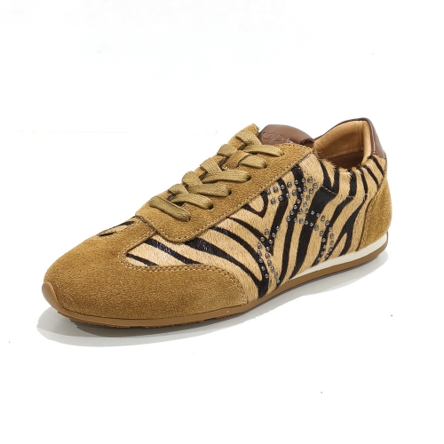 Zapato de cordoneras, fabricado en ante animal print, con suela de goma