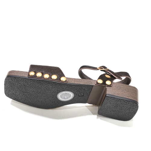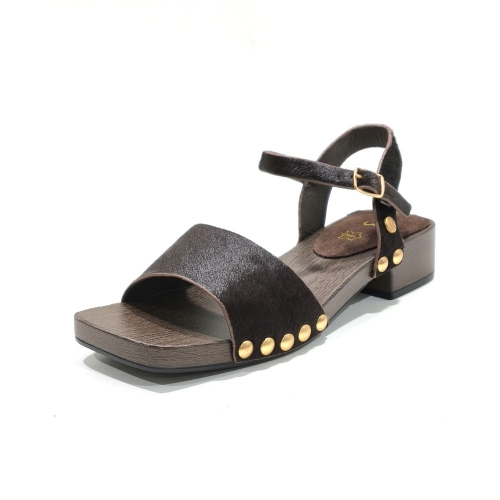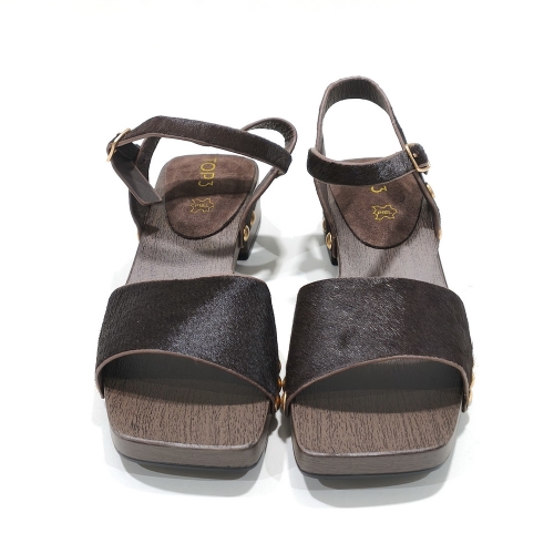 Sandalia con tira con hebilla, fabricada en potro, con tacón de 3 cm