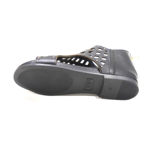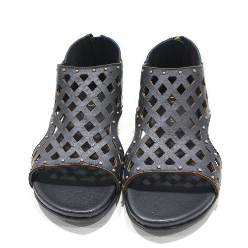 Sandalia de talón cerrada con cremallera trasera, fabricada en piel troquelada, con suela de goma