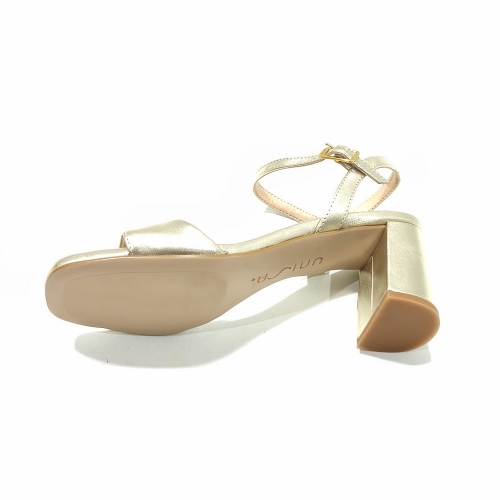 Sandalia con tira en el empeine con hebilla, fabricada en piel, con tacón de 5 cm y suela de goma