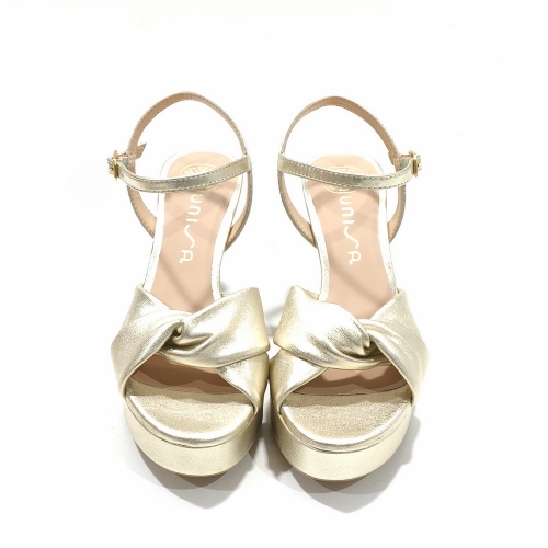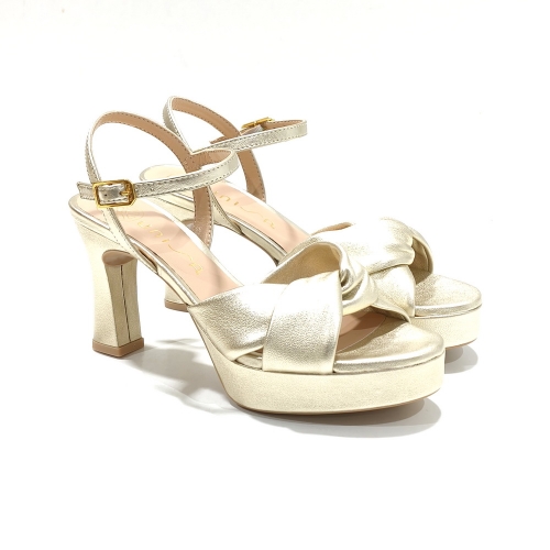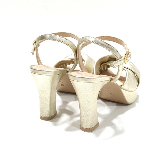 Sandalia con tira en el empeine con hebilla, fabricada en piel, con tacón de 8 cm y plataforma de 2.5 cm